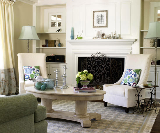 ...I want to inject some color with an area rug, coffee table, pillows and curtains.... I do love robin's egg blue or maybe something a little brighter is needed to offset the beige. I do get quite a bit of light from the window in the photo during the day but the room gets quite dark at night since there are currently only two pot lights above the fireplace and a lamp in the back corner of the room. What are your thoughts about the robin's egg blue as an accent with the other colors?